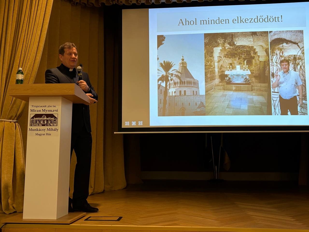 Today, a Lenten event was held at the Munkácsy Mihály Hungarian House, where we had the opportunity to listen to the lecture titled “The Holy Land” by Father József Csirpák, Greek Catholic parish priest of Salánk.